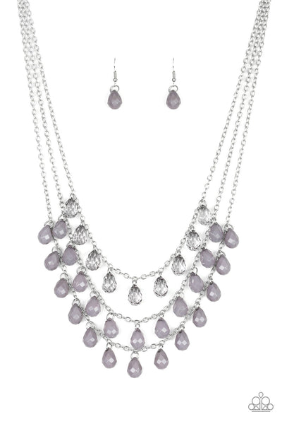 Featuring sparkling faceted finishes, layers of smoky, opaque, and gray teardrop beads cascade below the collar for a whimsical ombre effect. Features an adjustable clasp closure.