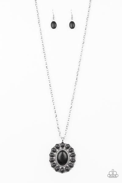 Radiating with refreshing black stone accents, a dramatic floral pendant swings from the bottom of a lengthened silver chain for a seasonal look. Features an adjustable clasp closure.