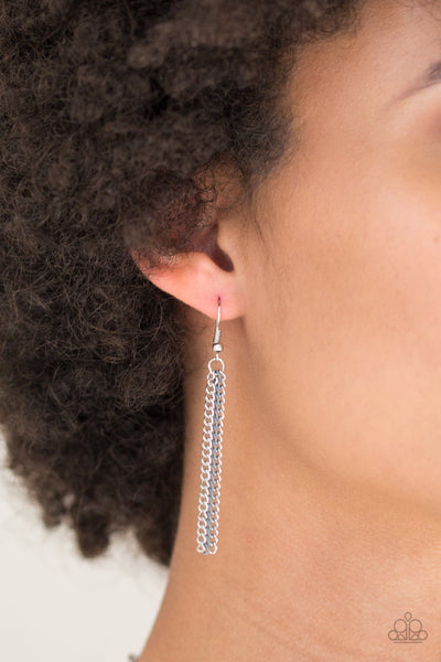 Strands of bold silver links give way to rows of shimmery silver and shiny gray chains, creating colorful layers down the chest. Features an adjustable clasp closure.