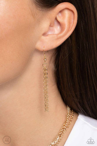 Featuring a gold hue, a quartet of dainty and ball mismatched chains cascades around the collar for a monochromatic neckless. Features an adjustable clasp closure.